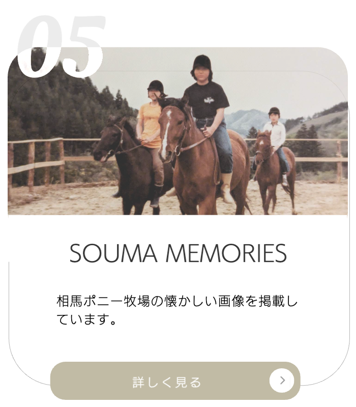 公益財団法人ハーモニィセンター 相馬ポニー牧場は、1981年の開設以来、地元地域の方々やハーモニィセンターに関わるたくさんの方々のご協力をいただきながら、牧場留学生の受け入れやキャンプの場などとして、子どもたちのたくさんの笑顔や思い出を紡いできました。